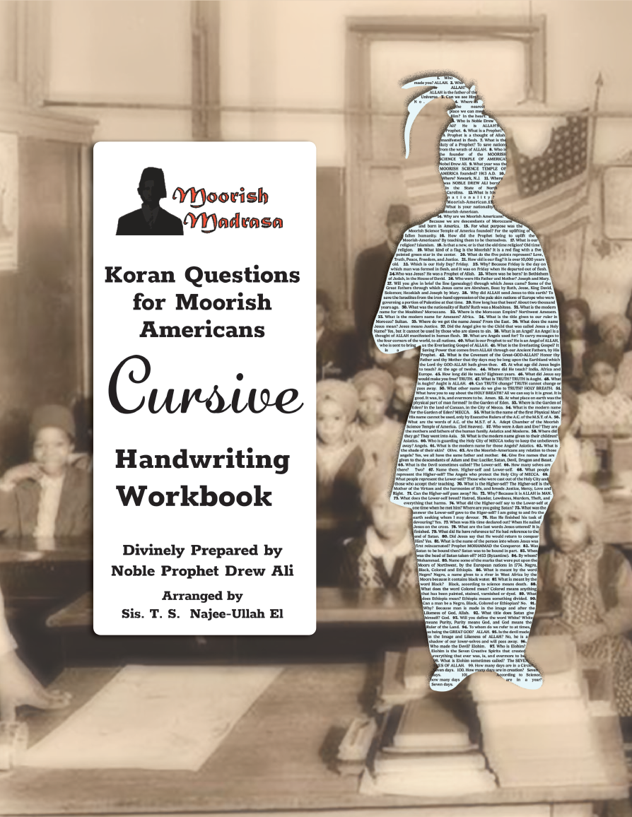 Master the art of cursive writing while deepening your connection to Moorish heritage. This workbook combines the foundational Koran Questions for Moorish Americans with engaging handwriting practice to align mind, body, and spirit. Each stroke reflects universal harmony, fostering discipline, cultural pride, and self-discovery. Perfect for youth and adults, this book supports memorization, self-expression, and mindfulness. Reserve your copy today and start unlocking the metaphysical power of script writing!